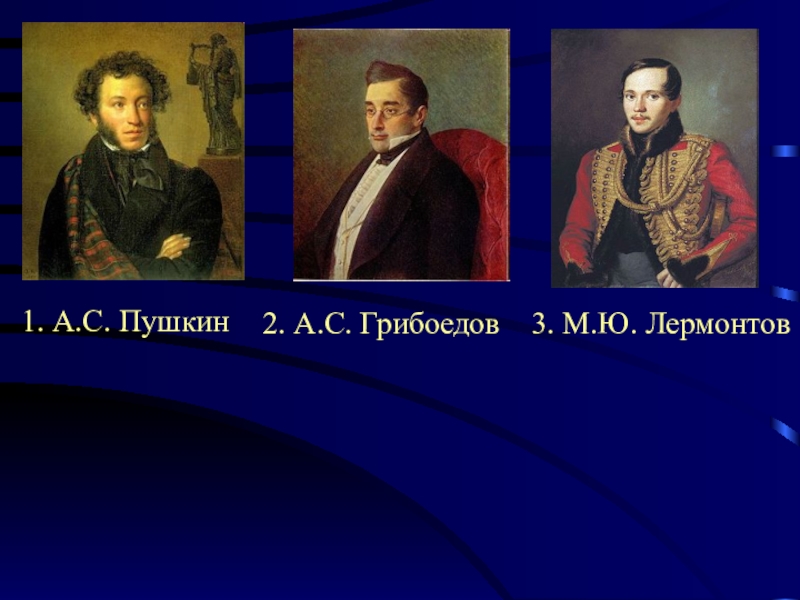1. А.С. Пушкин2. А.С. Грибоедов3. М.Ю. Лермонтов