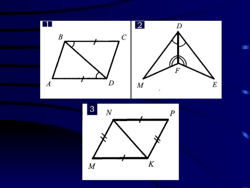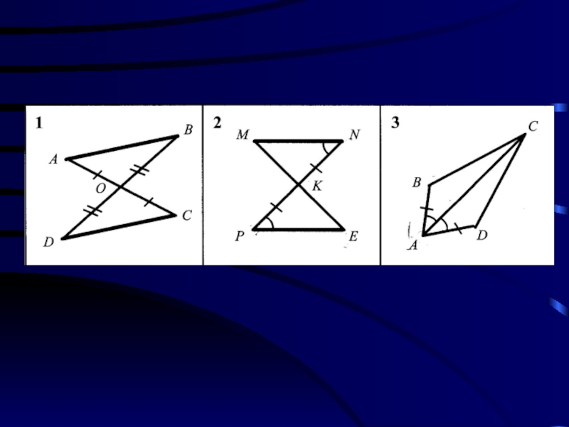 2 вопросНа каких чертежах треугольники равны по  первому признаку равенства треугольников?