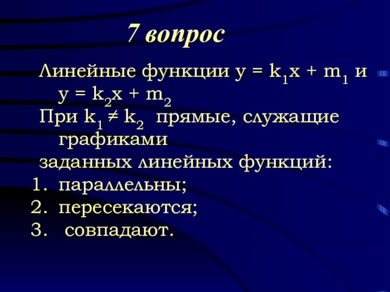 7 вопрос Линейные функции y = k1x + m1 и y = k2x + m2При k1 ≠