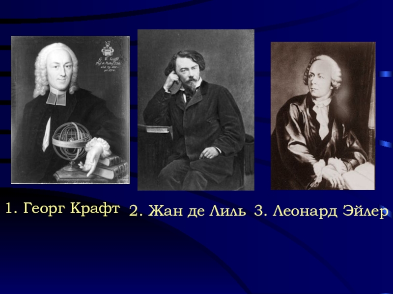 1. Георг Крафт2. Жан де Лиль3. Леонард Эйлер