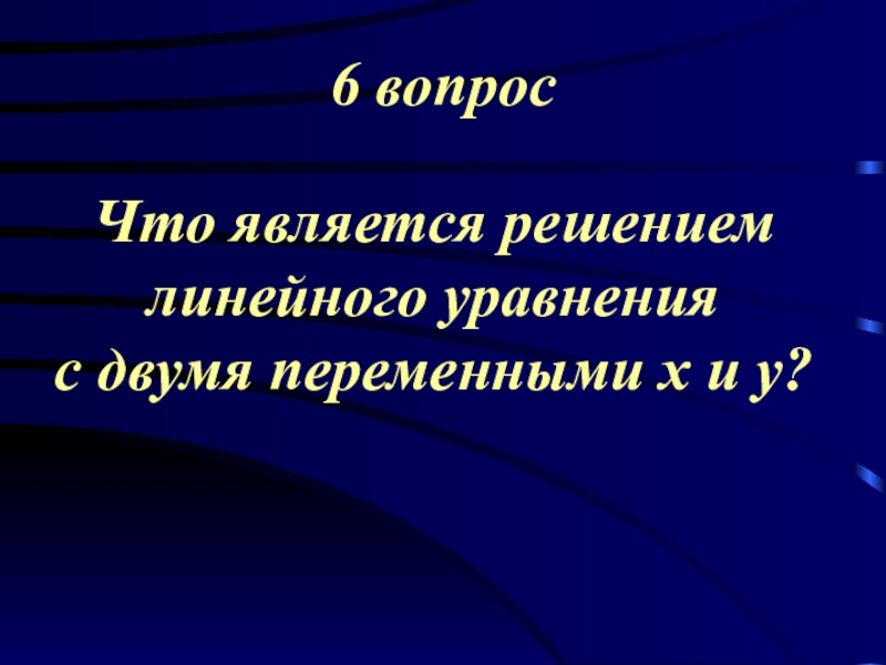 6 вопрос Что является решением линейного уравнения с двумя переменными x и y?