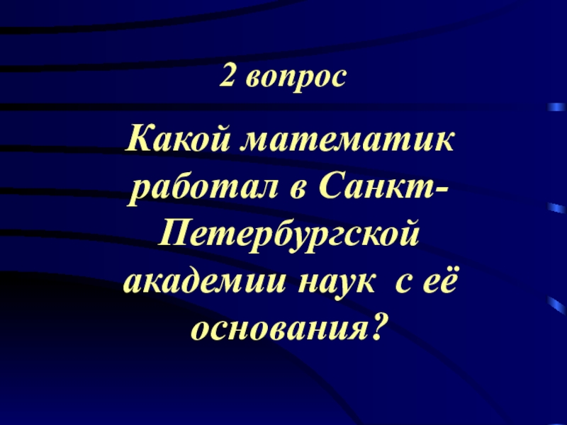 2 вопросКакой математик работал в Санкт-Петербургской академии наук с её основания?