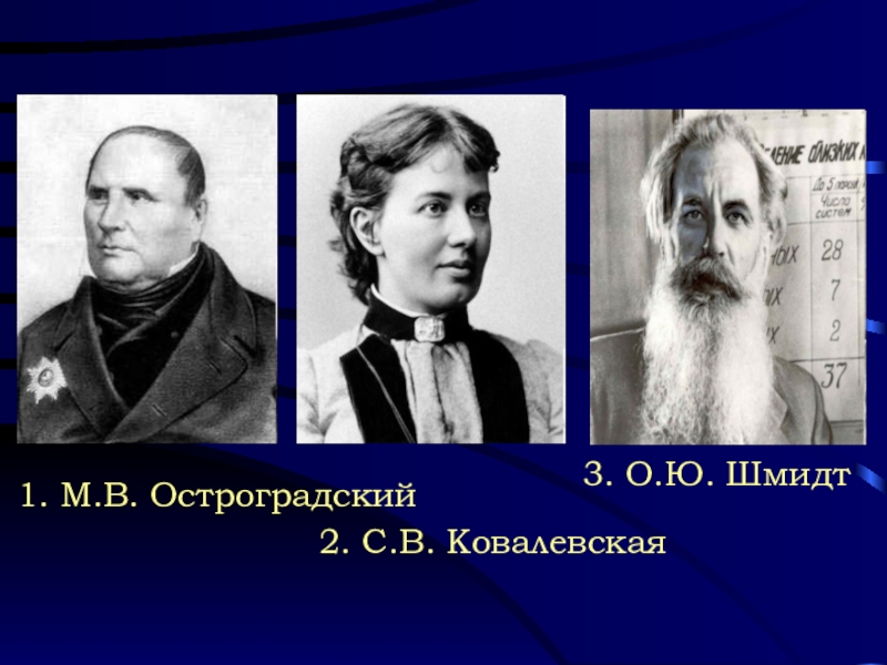 1. М.В. Остроградский2. С.В. Ковалевская3. О.Ю. Шмидт