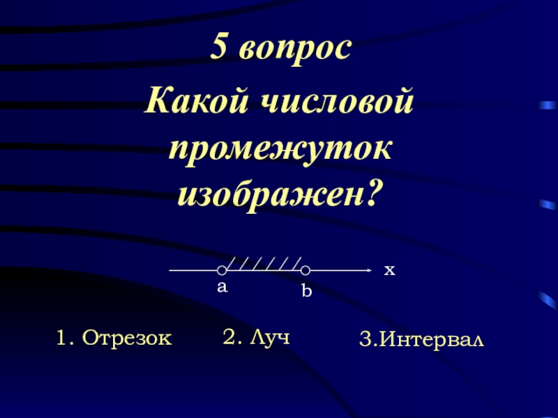 5 вопросКакой числовой промежуток изображен?abx1. Отрезок2. Луч3.Интервал