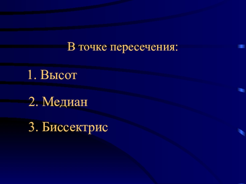 В точке пересечения:   1. Высот2. Медиан3. Биссектрис