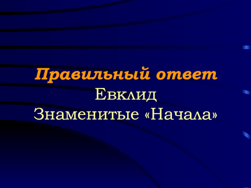 Слайд 5 Правильный ответ Евклид Знаменитые «Начала»