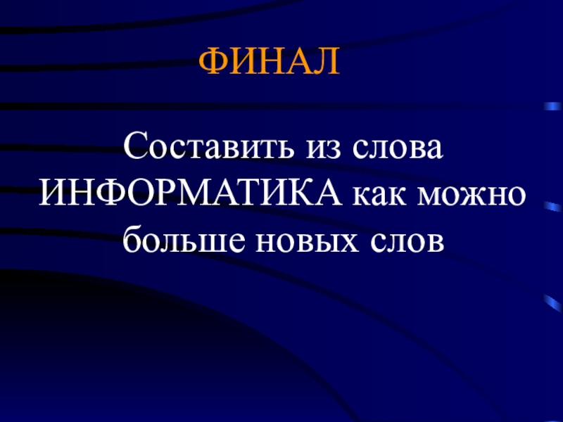 ФИНАЛСоставить из слова ИНФОРМАТИКА как можно больше новых слов
