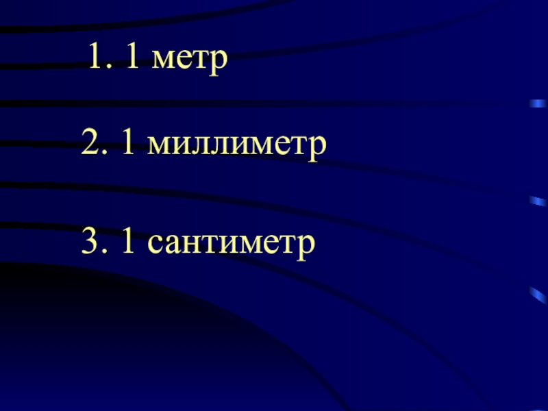 1. 1 метр2. 1 миллиметр3. 1 сантиметр