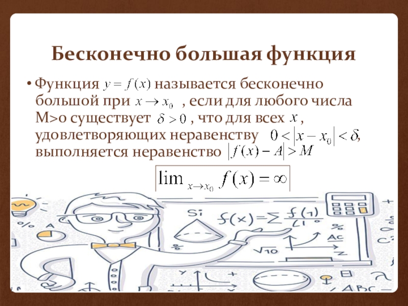 большой при , если для любого числа М>0 существует , что для всех , удовлетворяющих неравенству , выполняется неравенство
