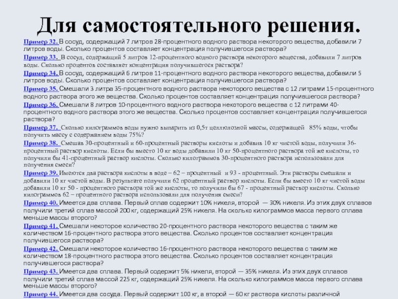 Слайд 17Задачи на концентрацию, смеси, сплавы.