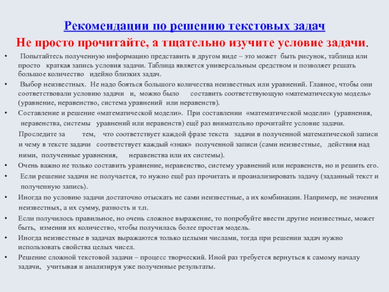 Рекомендации по решению текстовых задач