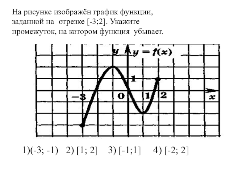 На рисунке изображён график функции, заданной на отрезке [-3;2]. Укажите промежуток, на котором функция убывает.