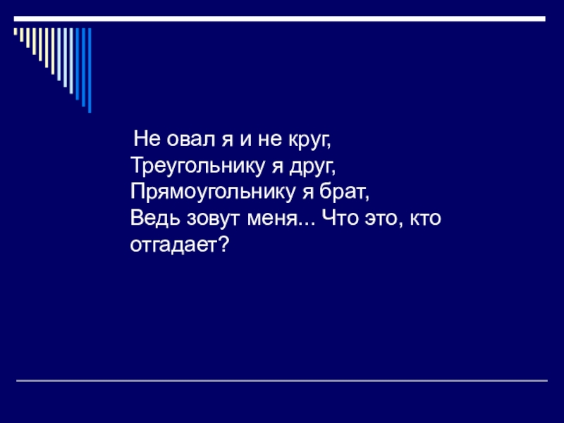 Слайд 22 Не овал я и не круг, Треугольнику я друг, Прямоугольнику я