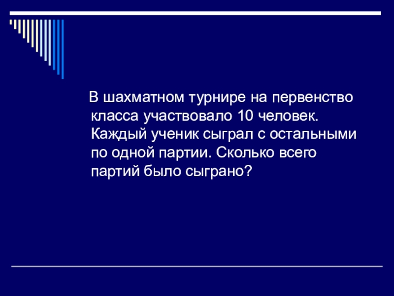 Слайд 12 В шахматном турнире на первенство класса участвовало 10 человек.