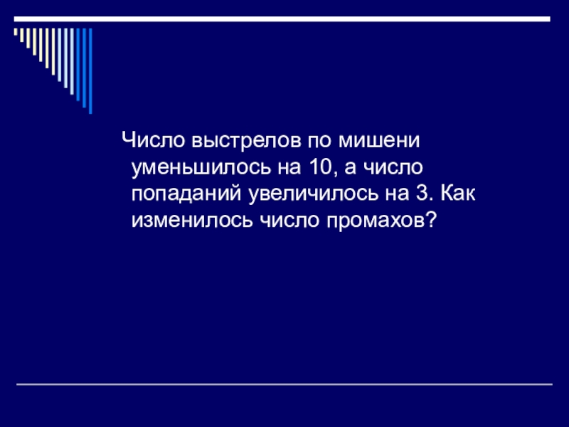 Слайд 26 Число выстрелов по мишени уменьшилось на 10, а число попаданий