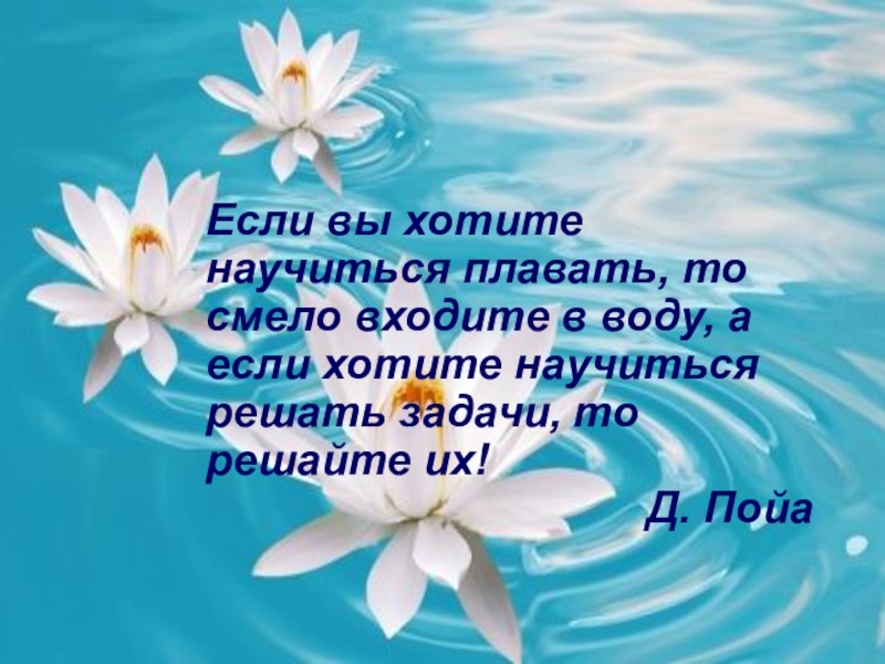 Если вы хотите научиться плавать, то смело входите в воду, а если хотите научиться решать задачи, то решайте их!