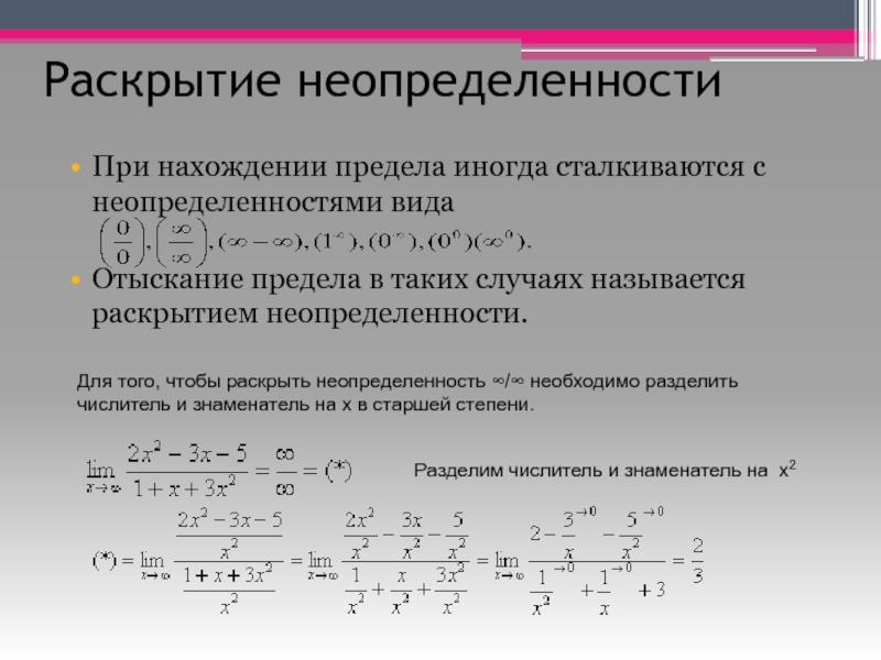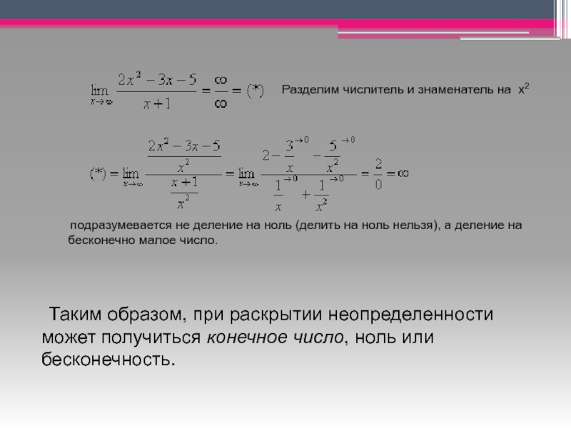 Таким образом, при раскрытии неопределенности может получиться конечное число, ноль или бесконечность.