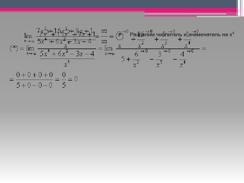 Для того, чтобы раскрыть неопределенность ∞/∞ необходимо разделить числитель и знаменатель на х в старшей степени.