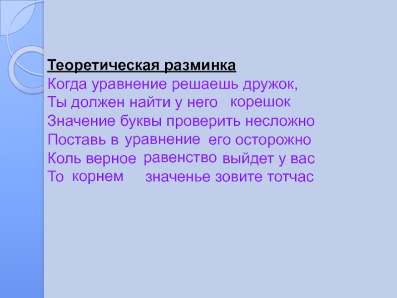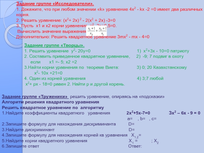 Задание группе «Труженики» решить уравнение, опираясь на «подсказки»
