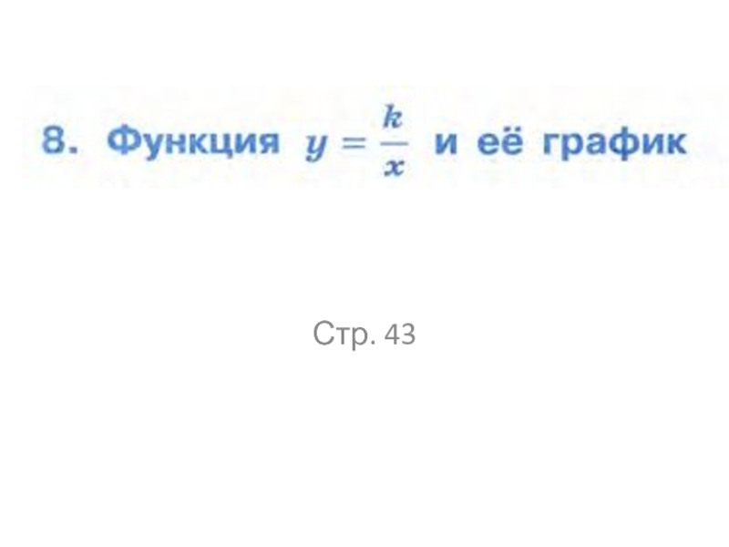 Презентация, доклад - приложение к учебнику Макарычев, алгебра 8. График функции y=k/x