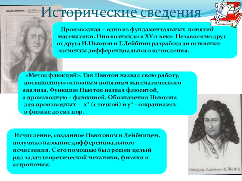 Исчисление, созданное Ньютоном и Лейбницем, получило название дифференциального исчисления. С его помощью был решен целый ряд задач теоретической механики, физики и астрономии.