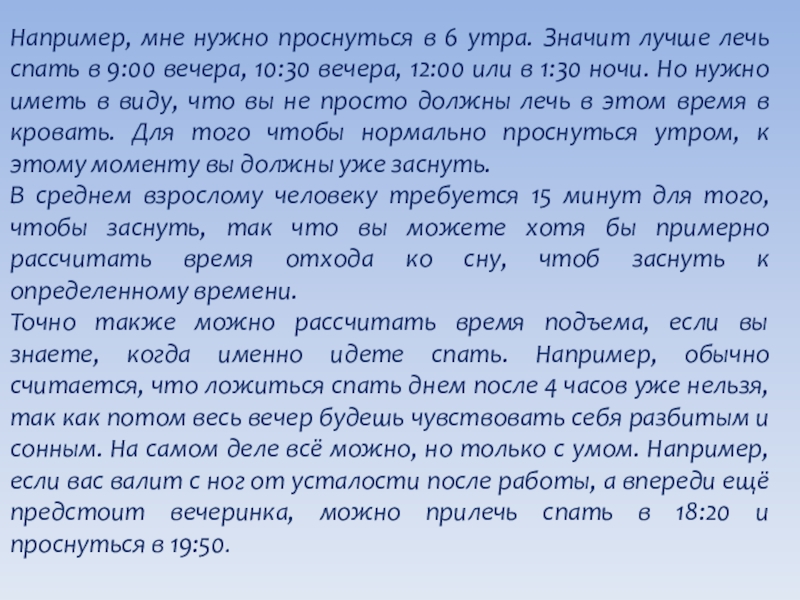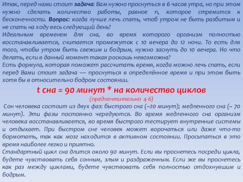 Расчет продолжительности сна.