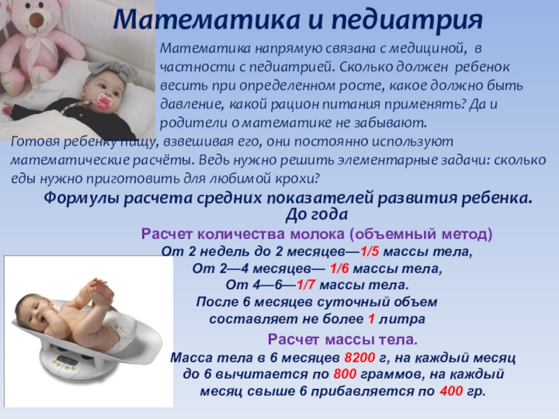 Готовя ребенку пищу, взвешивая его, они постоянно используют математические расчёты. Ведь нужно решить элементарные задачи: сколько еды нужно приготовить для любимой крохи?