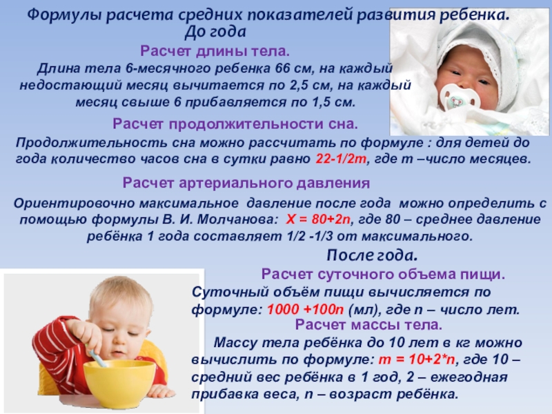 Формулы расчета средних показателей развития ребенка.