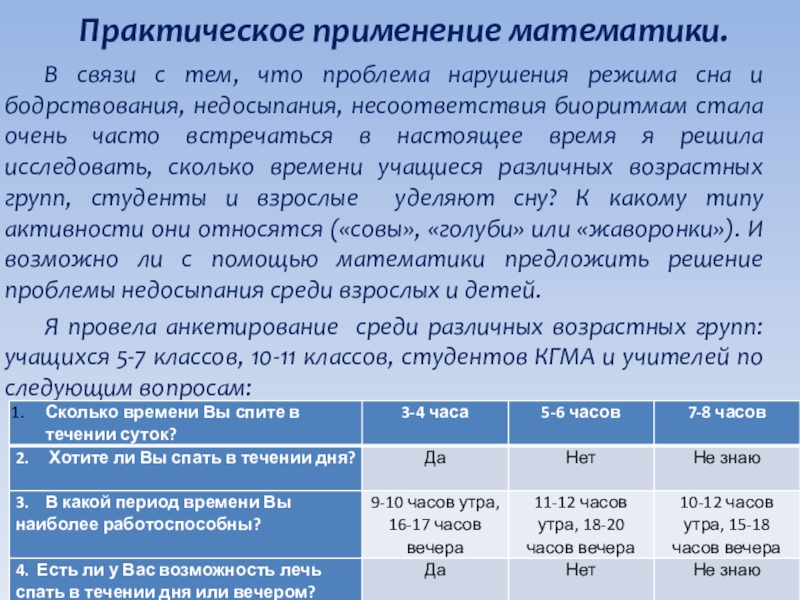 Практическое применение математики.