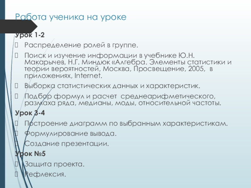 информации в учебнике Ю.Н. Макарычев, Н.Г. Миндюк «Алгебра. Элементы статистики и теории вероятностей, Москва, Просвещение, 2005, в приложениях, Internet.