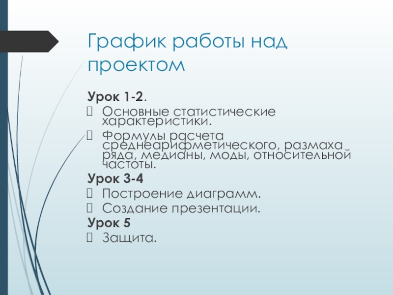 Произведите подбор рабочих групп, распределите роли внутри группы, выберите директора. Определитесь с направлением (статистической характеристикой) работы над проектом.