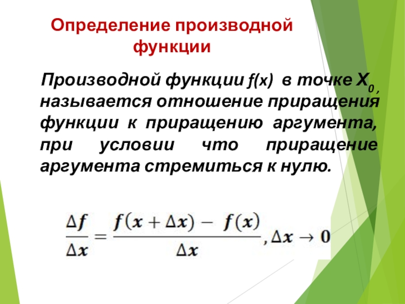называется отношение приращения функции к приращению аргумента, при условии что приращение аргумента стремиться к нулю.