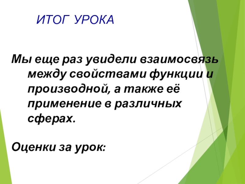 Мы еще раз увидели взаимосвязь между свойствами функции и производной,