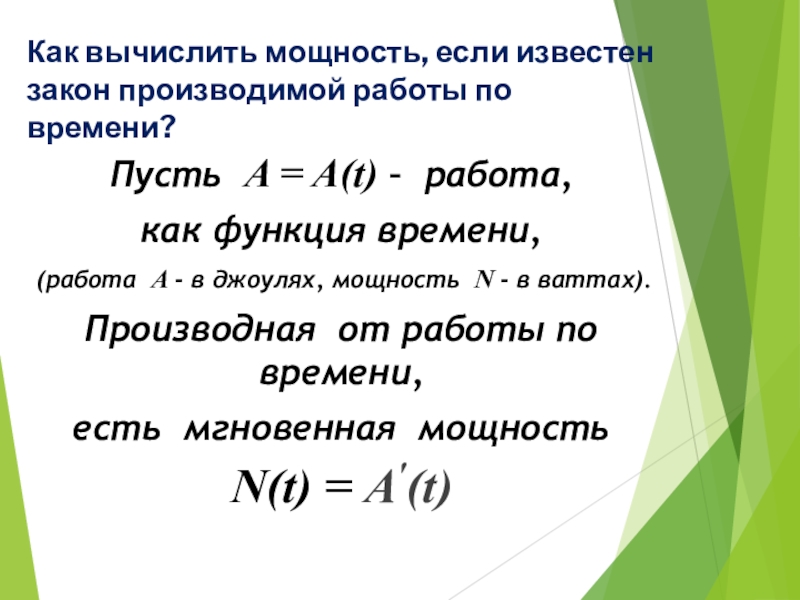 Слайд 10Как вычислить мощность, если известен закон производимой работы по времени?