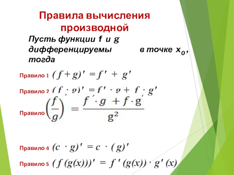 Правило 5 ( f (g(x)))′ = f ′ (g(x))⋅ g′ (x)