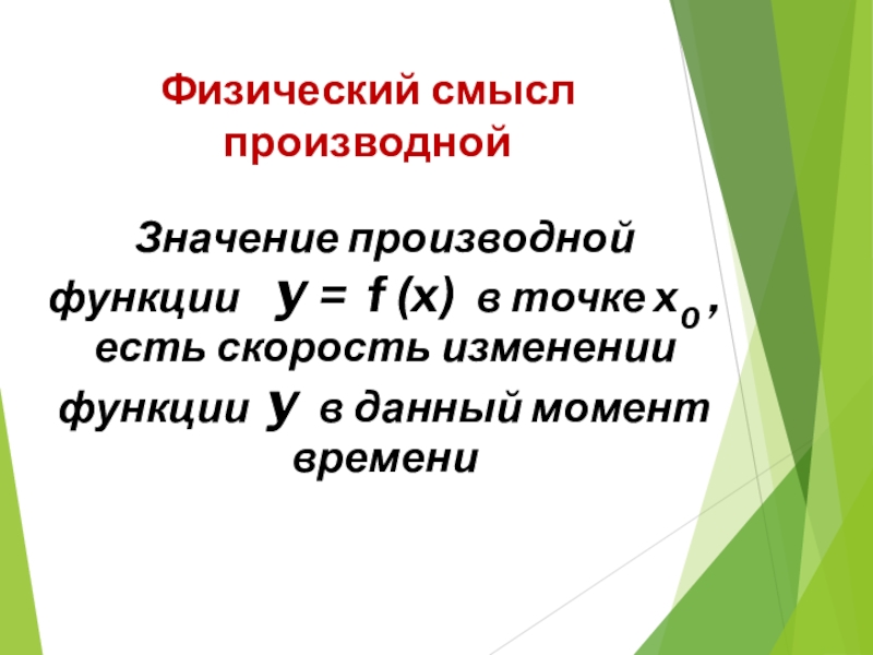 точке x0 ,есть скорость изменении функции y в данный момент времени