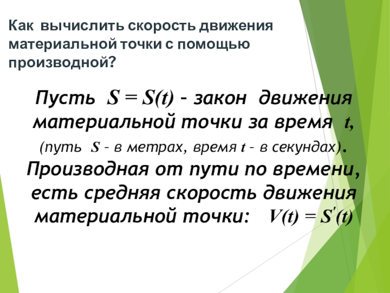 Слайд 8Как вычислить скорость движения материальной точки с помощью производной?