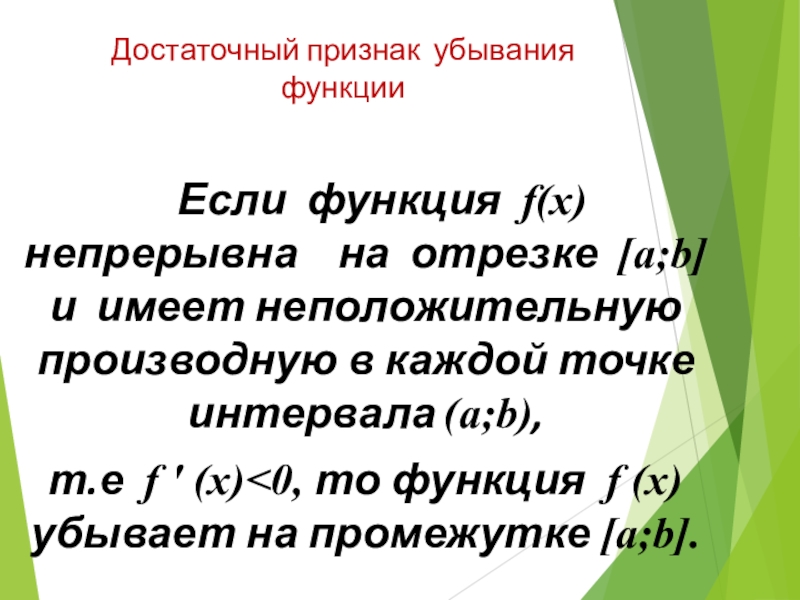 т.е f ′ (x)˂0, то функция f (x) убывает на промежутке [а;b].