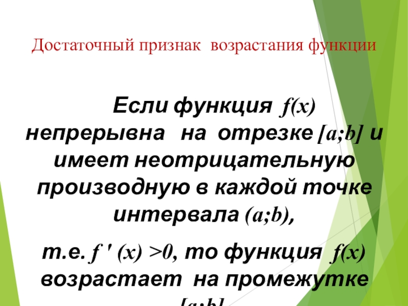 т.е. f ′ (x) >0, то функция f(x) возрастает на промежутке [а;b].