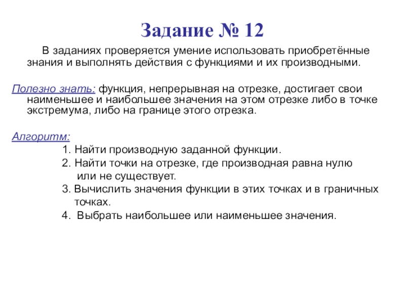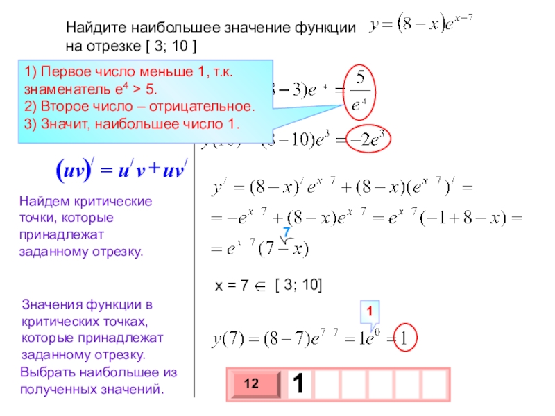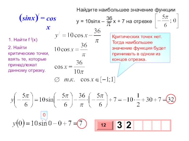 2. Найти критические точки, взять те, которые принадлежат данному отрезку.