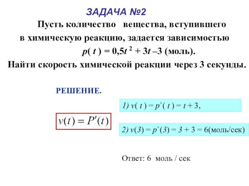 2) v(3) = p`(3) = 3 + 3 = 6(моль/сек)