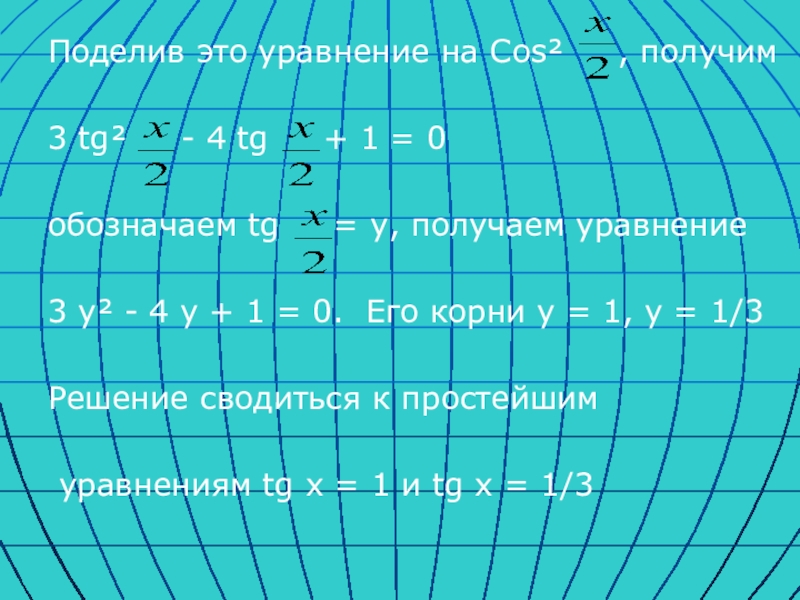 Поделив это уравнение на Cos²   , получим3 tg²   - 4 tg