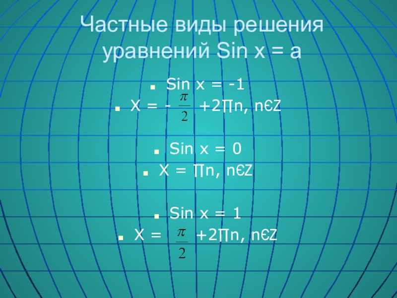 Слайд 3Частные виды решения уравнений Sin x = a