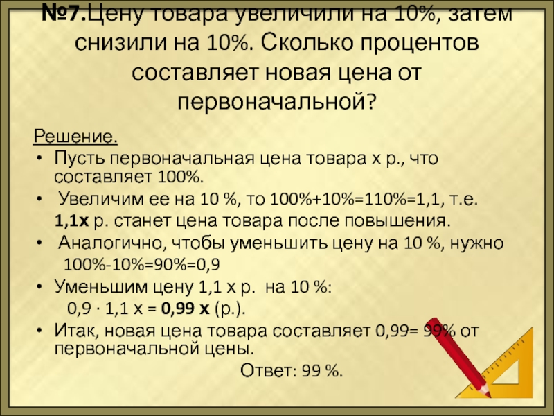 Аналогично, чтобы уменьшить цену на 10 %, нужно
