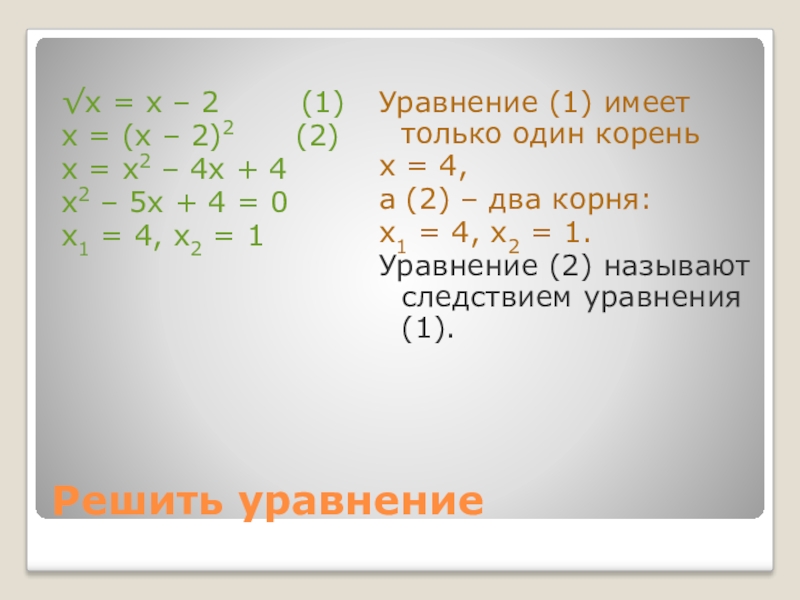 Уравнение (2) называют следствием уравнения (1).