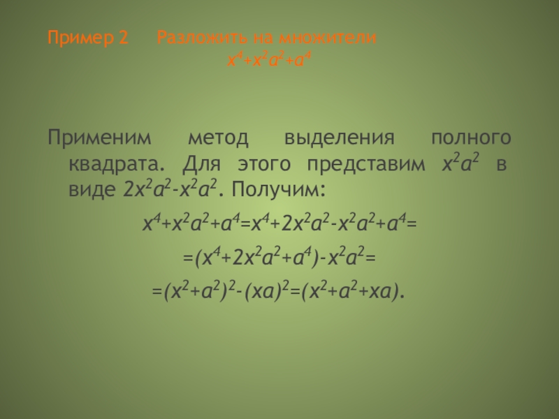 Применим метод выделения полного квадрата. Для этого представим x2a2 в виде 2x2a2-x2a2. Получим: