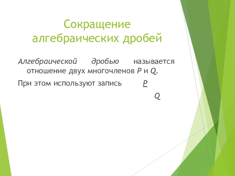 Алгебраической дробью называется отношение двух многочленов P и Q.