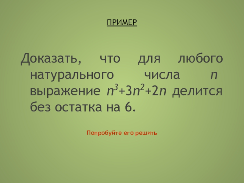 Если n=3, то p(3)=33+3·32+2·3=27+27+6=60. Поэтому и p(3) делится на 6 без остатка.