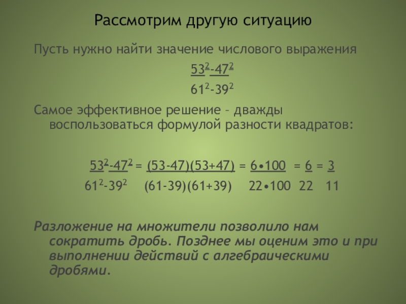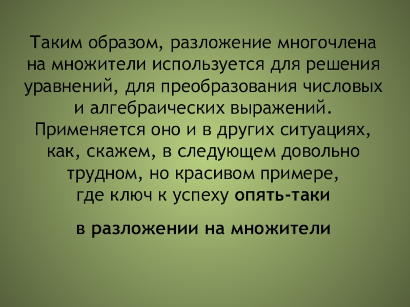 Слайд 3 Сначала убедимся в том что разложение на множители –вещь полезная.