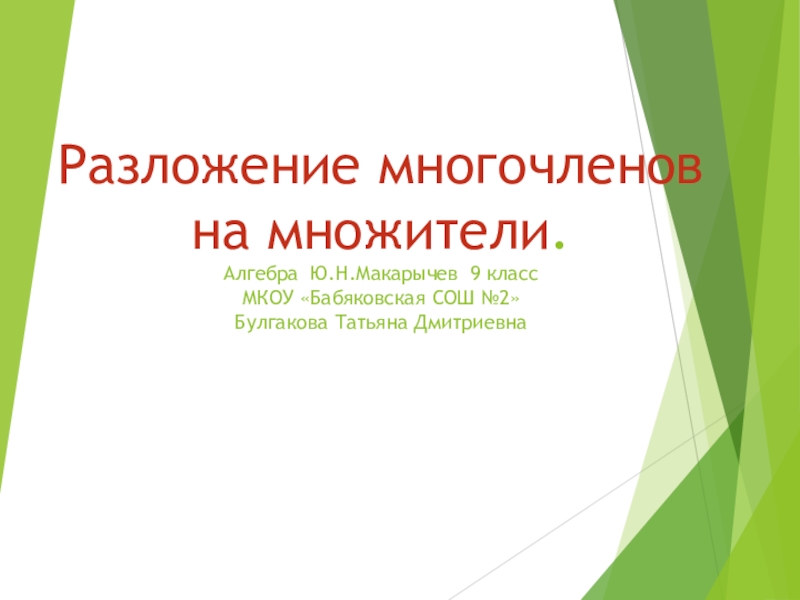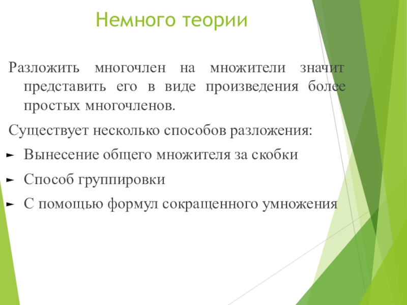 Слайд 12Разложение многочлена на множители с помощью формул сокращенного умножения